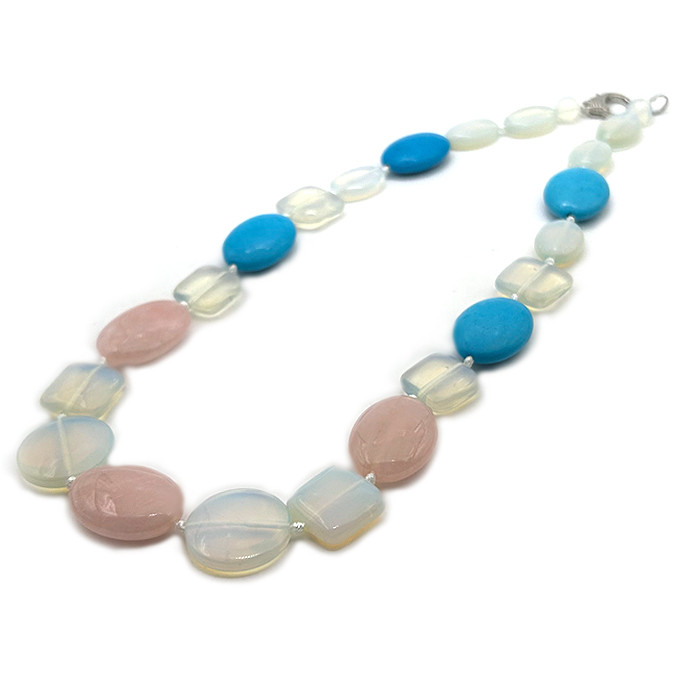Буси — Місячний Камінь, Рожевий Кварц і Бірюза — довжина 51 см