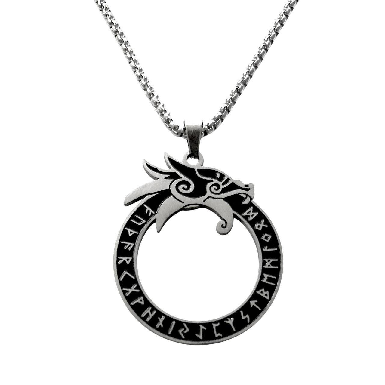 Амулет виконаний у формі уробороса — стародавнього символу змії або дракона, що кусає власний хвіст. Цей знак уособлює вічність, циклічність часу і нескінченне оновлення життя. Уздовж кільця проходить рунічне коло — ряд символів старшого футарка, які здавна використовувалися як магічні знаки сили, захисту і мудрості.